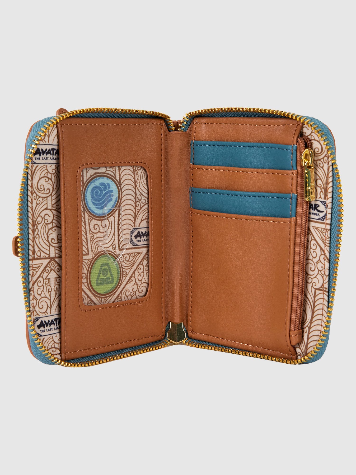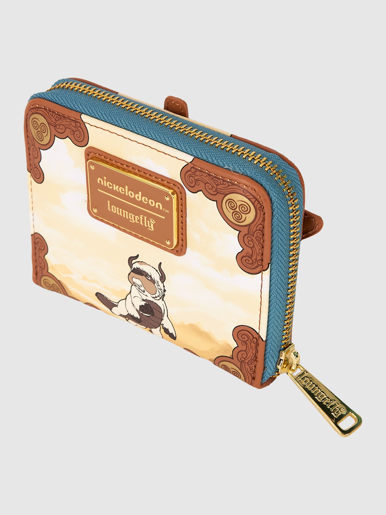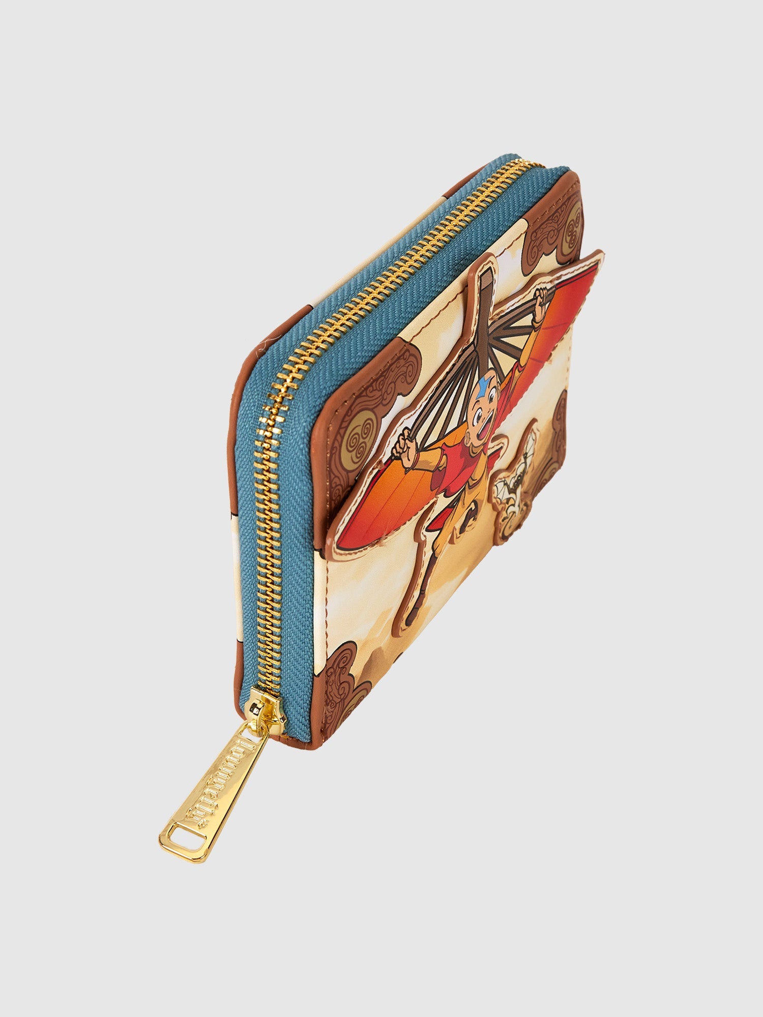 Brave the elements in style! Take along this Avatar: The Last Airbender wallet. On the front, you'll find a colorful applique of Aang, flying in his glider, his wings stretched out. Below him, an applique of Momo appears, and a picturesque view of mountains unfolds. The air-bending symbol, along the trim, shines in gold-foil detail. Flip the wallet around, and Appa appears on the back. Secure your valuables for a day of soaring through adventures.