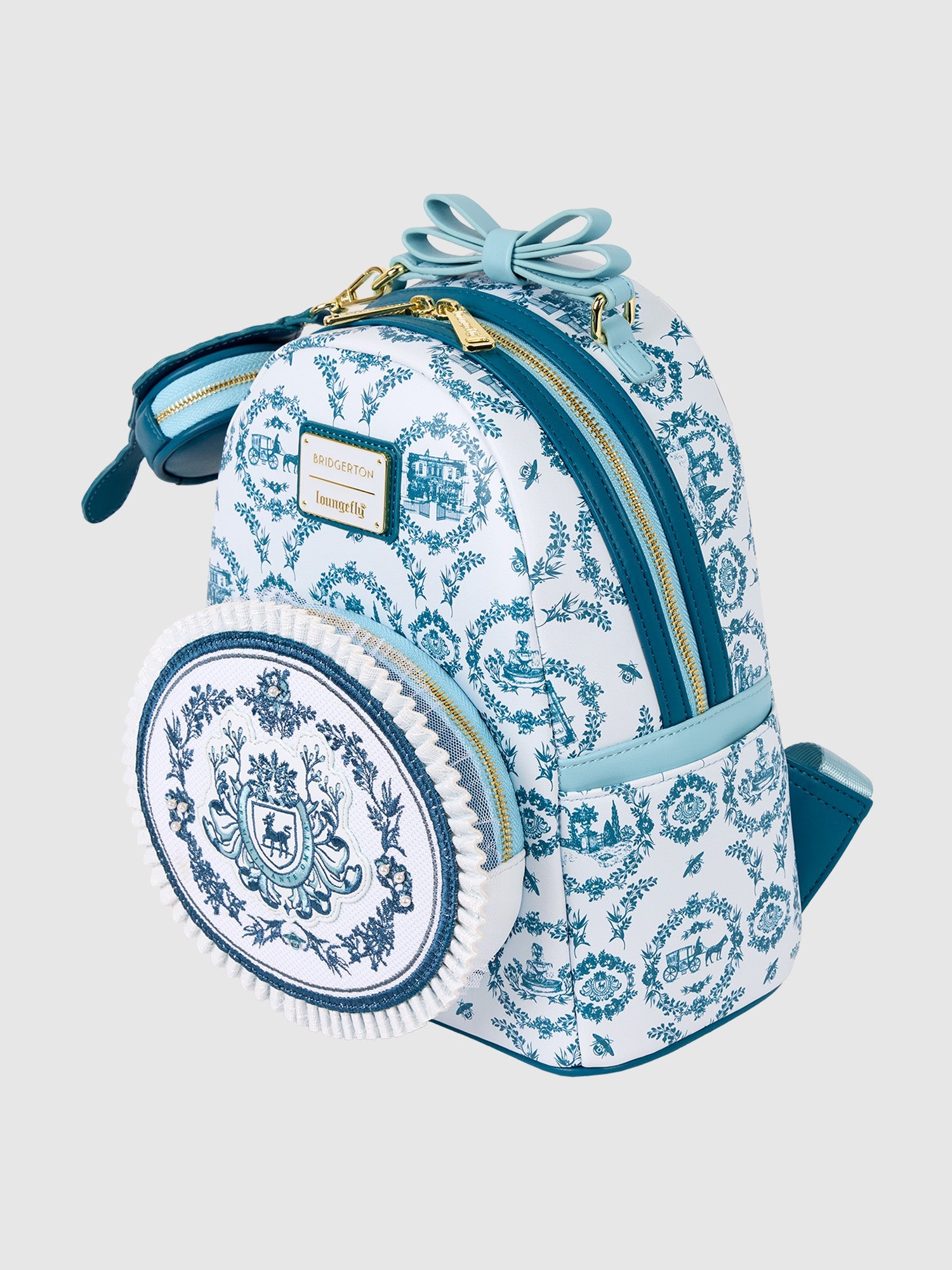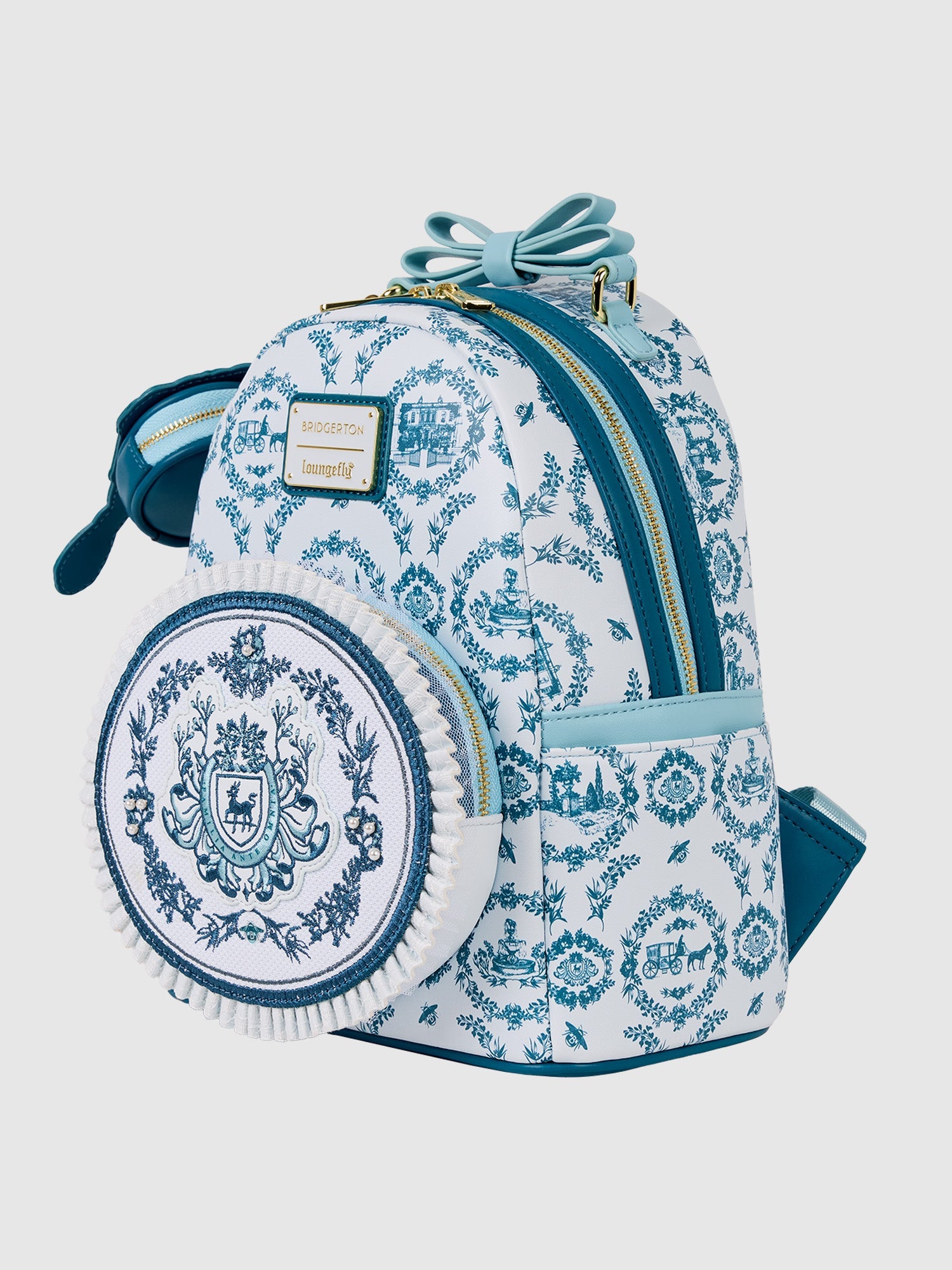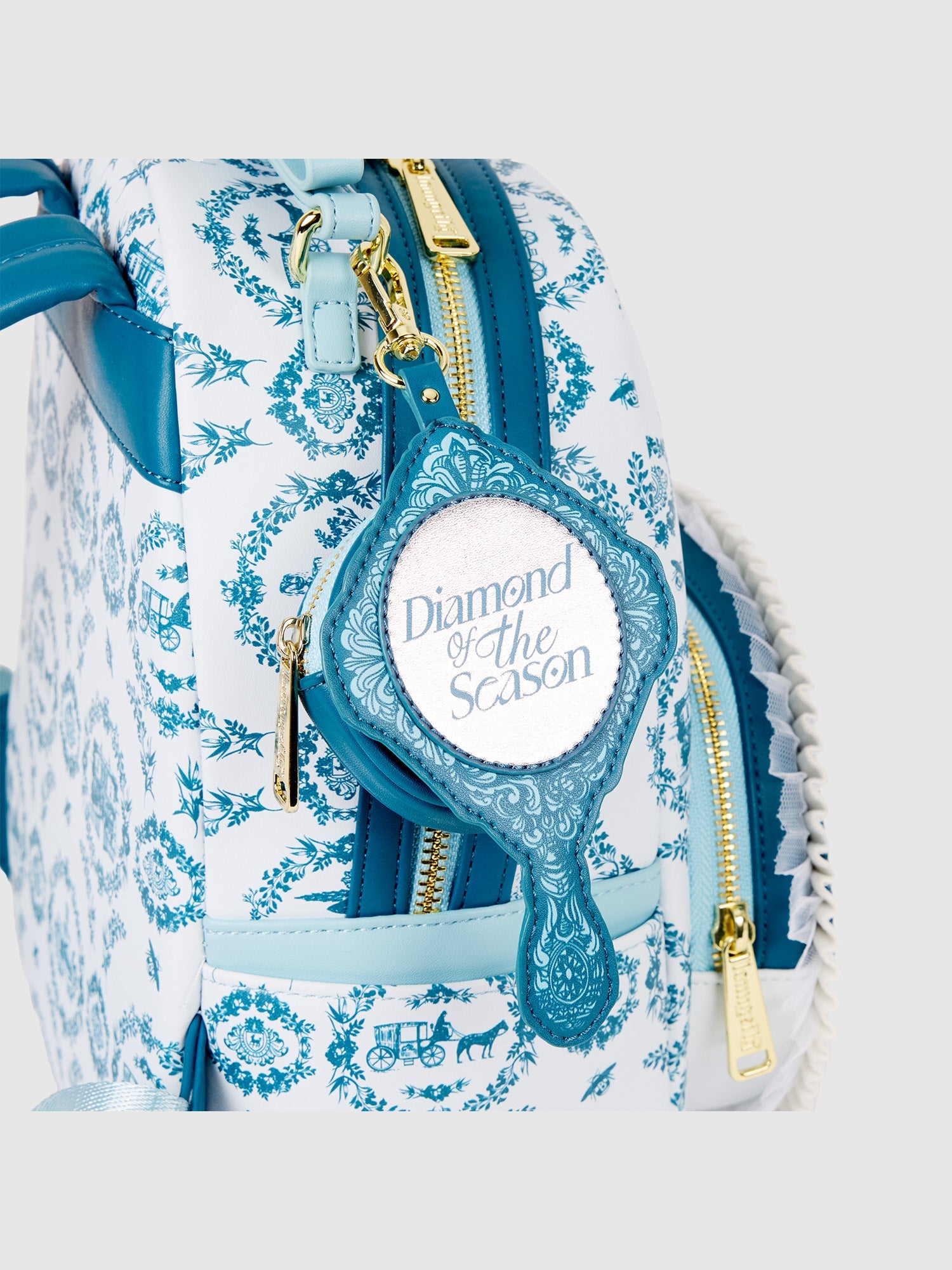 The perfect accessory for the diamond of the season! This mini backpack embodies the elegant world of Bridgerton. You'll find embroidery, real pearl details, and lace on the front pocket. A detachable coin bag in the shape of a hand mirror features silver foil and reads, "You're the Diamond of the Season." A 3D bow top handle ties everything together nicely. Shine like the radiant diamond you are!