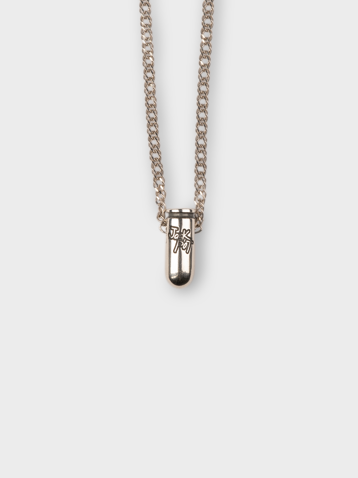 Step into the world of Devil May Cry with this bold bullet-shaped pendant, expertly crafted from high-quality 3D printed silver. Inspired by the action-packed universe of the anime, this pendant features an engraved "JACKPOT" message. The sleek design reflects the fierce, high-stakes battles of the series, making it a perfect symbol for any true fan. Its polished silver finish ensures it catches the light with every movement, making a striking statement whether worn alone or layered with other pieces.