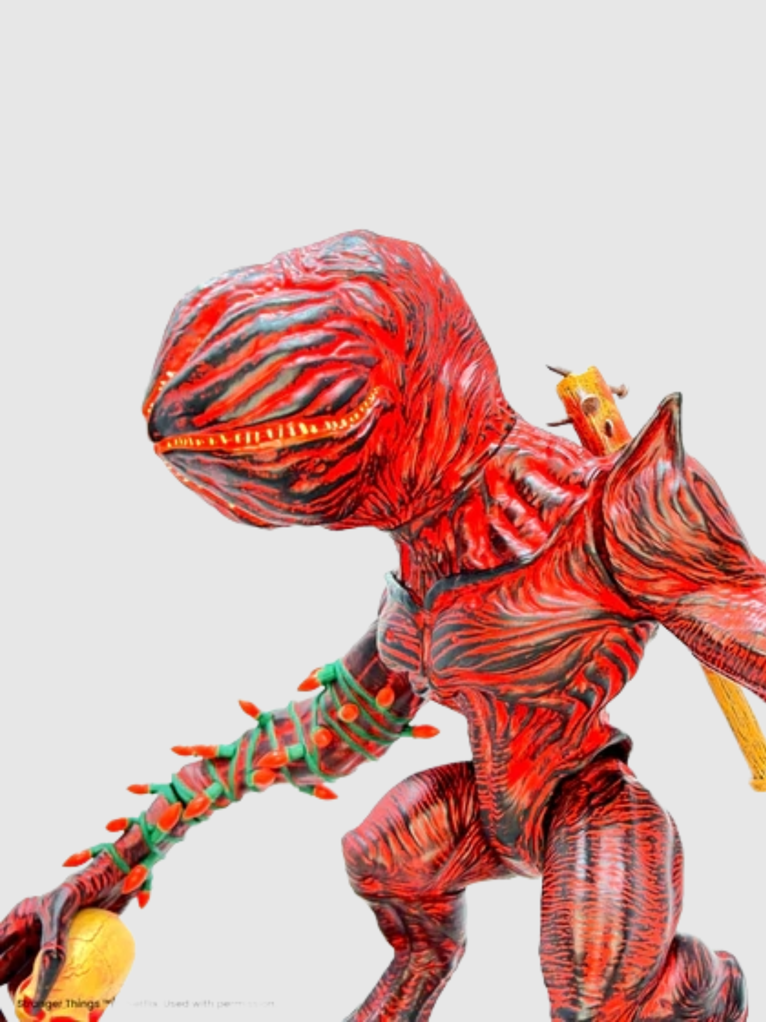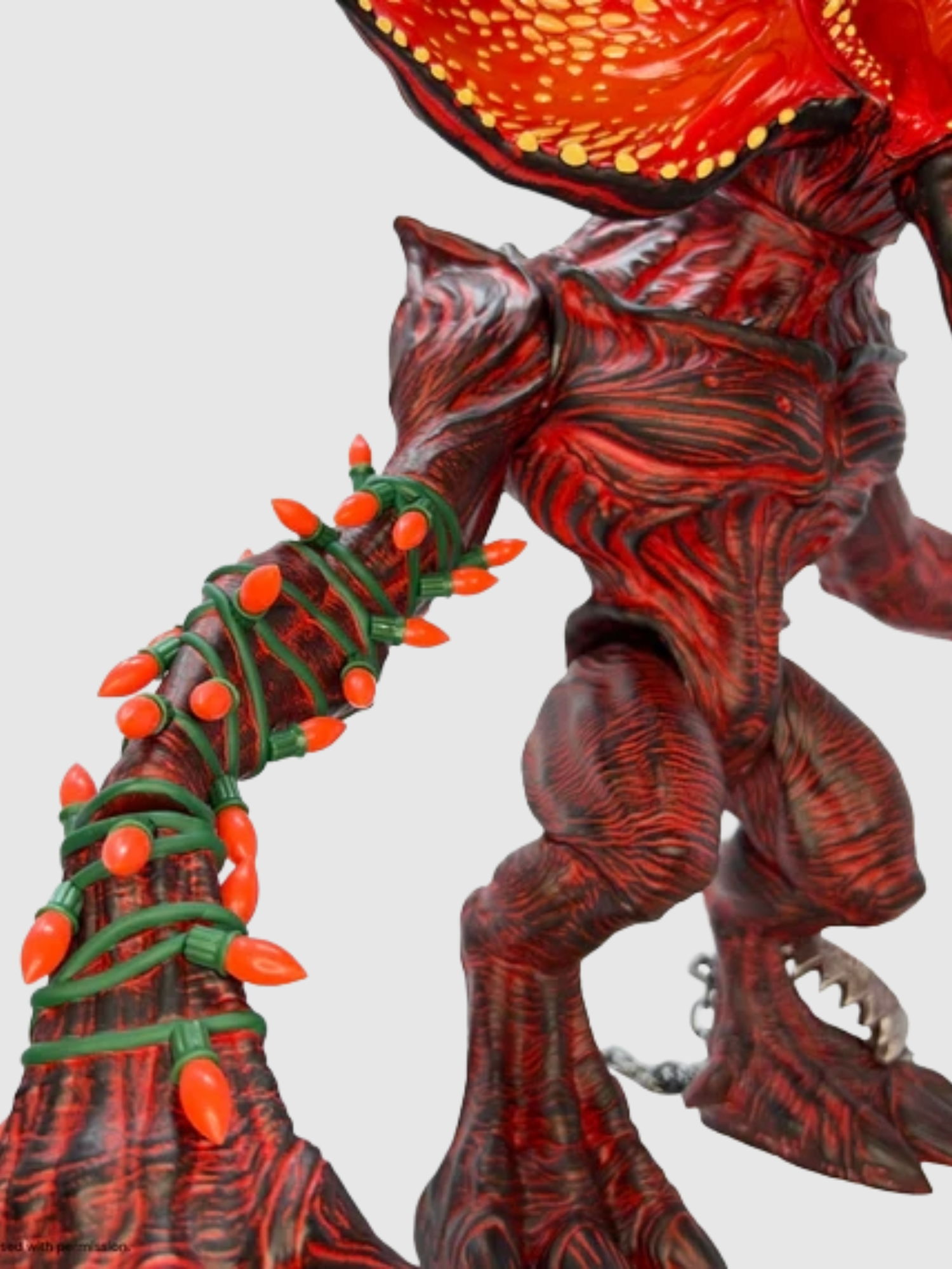 From designer James Groman and the world of Netflix's STRANGER THINGS, the massive Demogorgon �E€�E Vinyl Designer Figure is back to drag you to a dark new dimension. Features glow-in-the-dark Christmas lights as well as articulation at the head, legs, arms and wrists. Plus, each figure comes complete with a swappable hand and head ... and Dart!