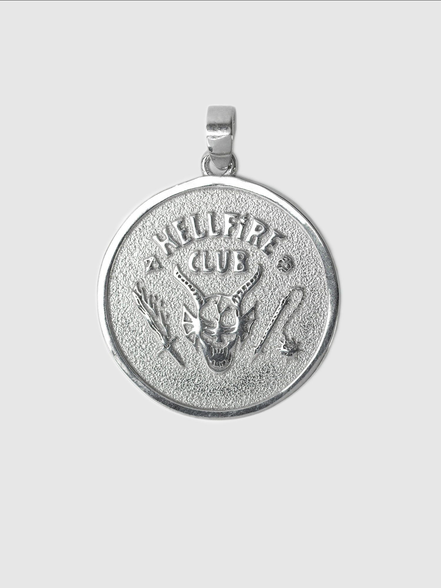 Believe it or not, Hellfire Clubs were real things back in the day, they were social clubs for the elite where they could do roughly anything they wanted outside the bounds of what was considered acceptable to the society. Our Hellfire Club medallion is a reference to a secret club for outcasts, weirdos, rebels and of course Dungeons & Dragons fans. So, if you have a sardonic sense of humor and you feel like someone who could join the real-life version of the Hellfire Club as seen on Netflix's outstandingly popular show Stranger Things - this necklace is for you! Simple medallion features the Hellfire Club logo, including Dungeon & Dragons symbols like a horned devil, a flaming sword, a mace, and two game dice as seen on Netflix series Stranger Things.